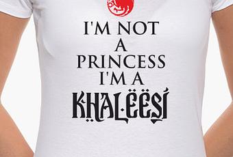 Si una camiseta relacionada con el merchindising de Juego de tronos ha funcionado bien, esa ha sido la camiseta que hace alusión a Daenerys Targaryen ( No soy una princesa soy una Khalesi) más comúnmente conocida en España como "La Khalesi". Ya que es un personaje con el que todos los espectadores, sean del sexo que sean, empatizamos bien.