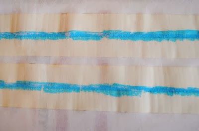 Colocais la cinta adhesiva de la manera que se indica en la foto y comenzais a pintar las lineas azules.