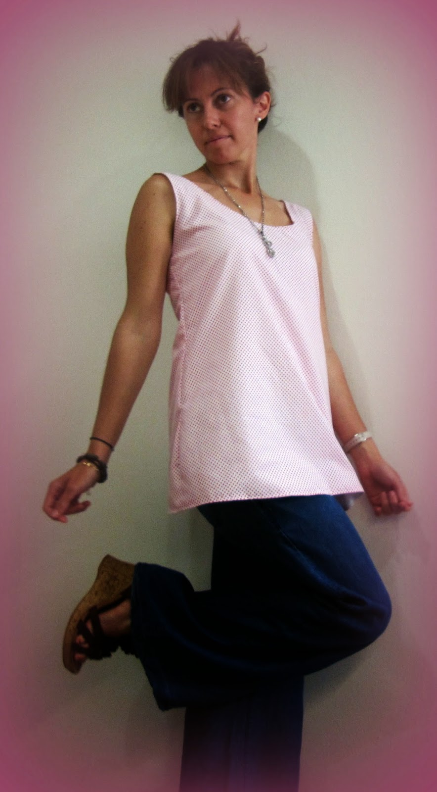 Es todo un orgullo haber hecho esta camisa. De una camiseta básica de tirantes hemos sacado el patrón, lo hemos cortado, cosido y ale! acabada.