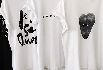 Camiseta blanca con letras en negro, sencilla pero con puntito, ¿verdad?