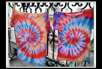 En la foto he puesto dos modelos con dos tintes diferentes y con diferente atado. Las oscuras están hechas con tinte de agua templada es marca Dilon .Os aconsejo este, sólo con un sobre se pueden hacer 6 camisetas, es menos pringoso y tiene más gama de colores. Las claras están con el tinte Iberia de toda la vida , se supone que es para agua muy caliente pero vale con la que sale del calentador. No olvidar poner en la mezcla el fijador y sal .