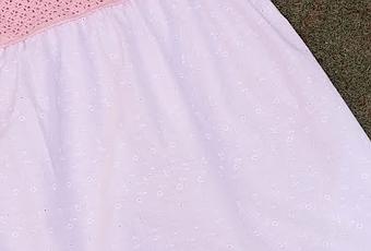 Cuerpito en rosa, lacitos en los tirantes y falda de una tela preciosa perforada.