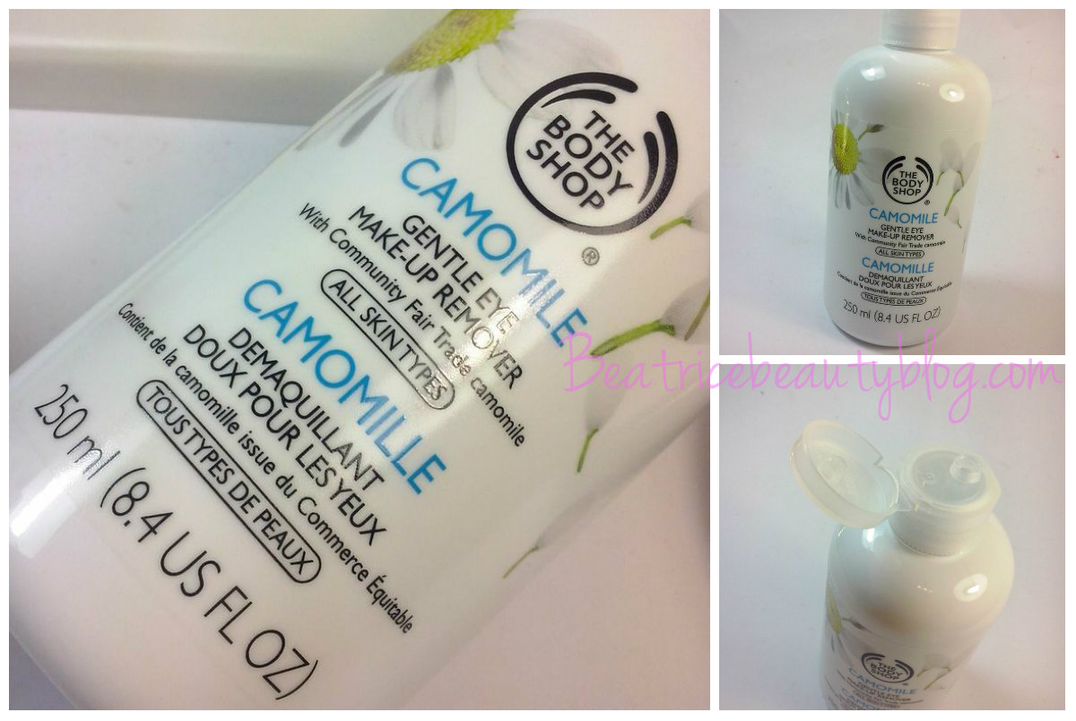 DESMAQUILLADOR DE OJOS DE CAMOMILAEste primer producto es un desmaquillador de ojos con camomila recomendado para todo tipo de pieles. Calmante y no graso, elimina el maquillaje diario con suavidad. Lo recomendaría para maquillajes suaves, empapando un disco de algodón retiraréis todo el maquillaje en unos segundos. Sin embargo para retirar máscaras waterproof o maquillajes mas resistentes hay que frotar un poco más. ( su precio es de 12€ y contiene 250 ml)