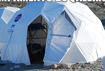 Llegada al campamento "lunar" de Qaleraliq. Y hago esta referencia al satélite de nuestro planeta porque es la primera impresión que tengo cuando lo veo. Parecen módulos espaciales, domos los llaman, pero a mí estas circulares moradas con forma de iglú me hacen pensar en investigaciones astrofísicas relacionadas con el cosmos. Dentro se duerme en literas. El frío será bastante presente durante la noche, como un pasajero que se apuntara a un ágape sin invitación previa. Las vistas desde aquí son una pasada. Una lengua gigantesca de hielo queda ante nuestro campamento como testigo de un inviernoeterno. Para vaciar la vejiga y demás tenemos que compartir una letrina bastante rudimentaria, que no todo el mundo se afana por mantener limpia y "perfumada" con unos maravillosos productos que convierten la fetidez en algo aceptable. Personal de mantenimiento y gente de otros grupos convivimos como refugiados exiliados en busca de la tierra prometida. Es difícil olvidar la gelidez del agua en el "arroyo" donde debemos lavar los platos. También es algo digno de recuerdo esos momentos compartidos de barullo caótico en el comedor, distribuyendo la Nutella, los panes Wasa, el embutido, el té del amor, cuya receta custodiaba Carmen, nuestra guía, como si fuera un tesoro inca.