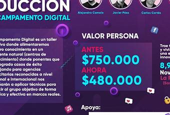 Nuestro Taller de Seducción para Punto de venta y Redes Sociales ha inspirado esta primera edición del Campamento Digital que se ha llamado “La seducción“, que es mucho más que un entrenamiento en marketing digital. Adicional a la presentación de Carlos Cortés como el speaker principal del evento, habrán otros conferencistas o ponentes que fortalecerán el conocimiento para los asistentes.