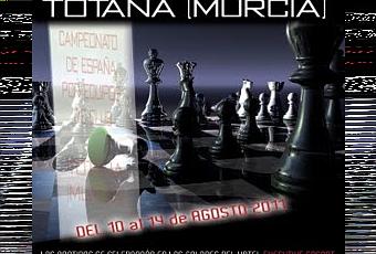 La localidad murciana de Totana acogerá del 10 al 14 de agosto el Campeonato de España de Ajedrez, en la modalidad por equipos de club, en el que participarán unos 180 ajedrecistas de 24 clubes del Grupo II que corresponde a las federaciones de Andalucía, Castilla La Mancha, Madrid, Comunidad Valenciana, Baleares, Murcia, Extremadura y Castilla La Mancha.El Campeonato se celebrará en los salones del Hotel "Executive Sport", en el que se disputarán un total de 6 rondas, al tiempo que se celebra durante los mismos días en el municipio coruñés de Padrón el mismo torneo correspondiente al Grupo I del resto de federaciones españolas, de la zona norte peninsular.