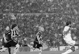 Postal del último clásico, jugado bajo la lluvia montevideana.