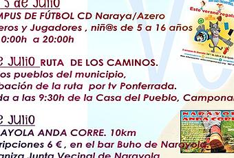 El Ayuntamiento de Camponaraya presenta un amplio programa de actividades encuadradas en el ocio y la cultura y pensadas para todas las edades bajo el nombre de ‘Viva el verano’. Para los más jóvenes, han organizado actividades con BierzoLand, campamentos, campus de fútbol. Para toda la familia han organizado rutas o la noche del vino. También excursiones para al gente joven y muchas otras que puedes consultar aquí: