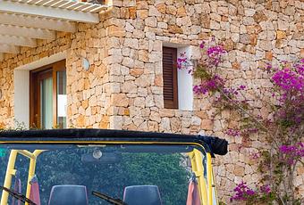El conjunto de casas que ofrece Can Corda se encuentra en una finca de acceso asfaltado entre sabinas y pinares, a pocos kilómetros de Cala Saona, Sant Francesc y el puerto de La Savina. Cada alojamiento cuenta con características específicas, adaptadas a distintas necesidades. Casita, una de las viviendas más amplias, dispone de cuatro dormitorios dobles y cinco baños, con capacidad para ocho personas. Piedra, con su estética de muros de piedra y vigas de madera, acoge hasta seis personas en tres habitaciones y dos baños.