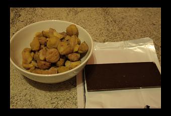 Las cantidades de estos los dejo un poco a vuestra elección dependiendo de si os gusta más el sabor a castañas o el sabor a chocolate. En mi caso he usado dos tabletas de chocolate y casi 400 gramos de castañas ya peladas.