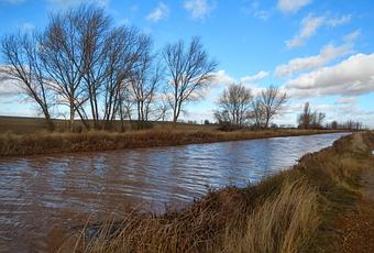 El canal de Castilla recorre un total de 207 kilómetros con un desnivel de 150 metros. Su principal función era la de transportar el cereal castellano hasta el Cantábrico mediante unas barcazas tiradas por mulas. Funcionó hasta que la implantación y la regularidad del ferrocarril lo dejó en desuso en 1959. Desde entonces conduce aguas para el riego de los campos.