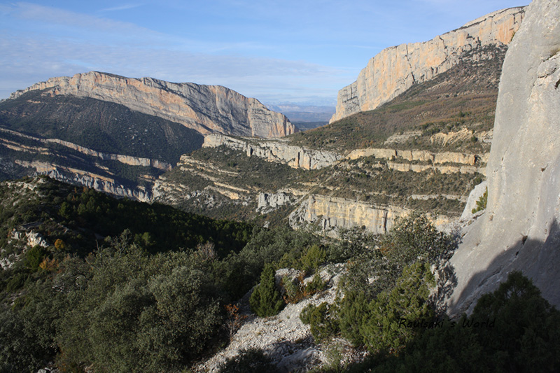 Después del destrepe hay que hacer una travesía lateral con unas vistas preciosas hacia el embalse de Canelles.