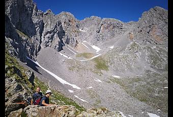 Tras ella, hemos de subir por un terreno bastante descarnado pero que no entraña más peligro que el tener cuidado con no lanzar piedras a los que se encuentren por debajo nuestra.