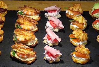 Canapés o aperitivos variados con pasta choux, irresistiblemente deliciosos y con un aspecto que dice cómeme una elección que no te defraudara en ninguna fiesta o simplemente para darnos un capricho, si queréis hacer la versión más rápida y fácil en el supermercado podréis encontrar todo tipo de tartaletas o panecitos tostados que también quedaran genial con estos rellenos.