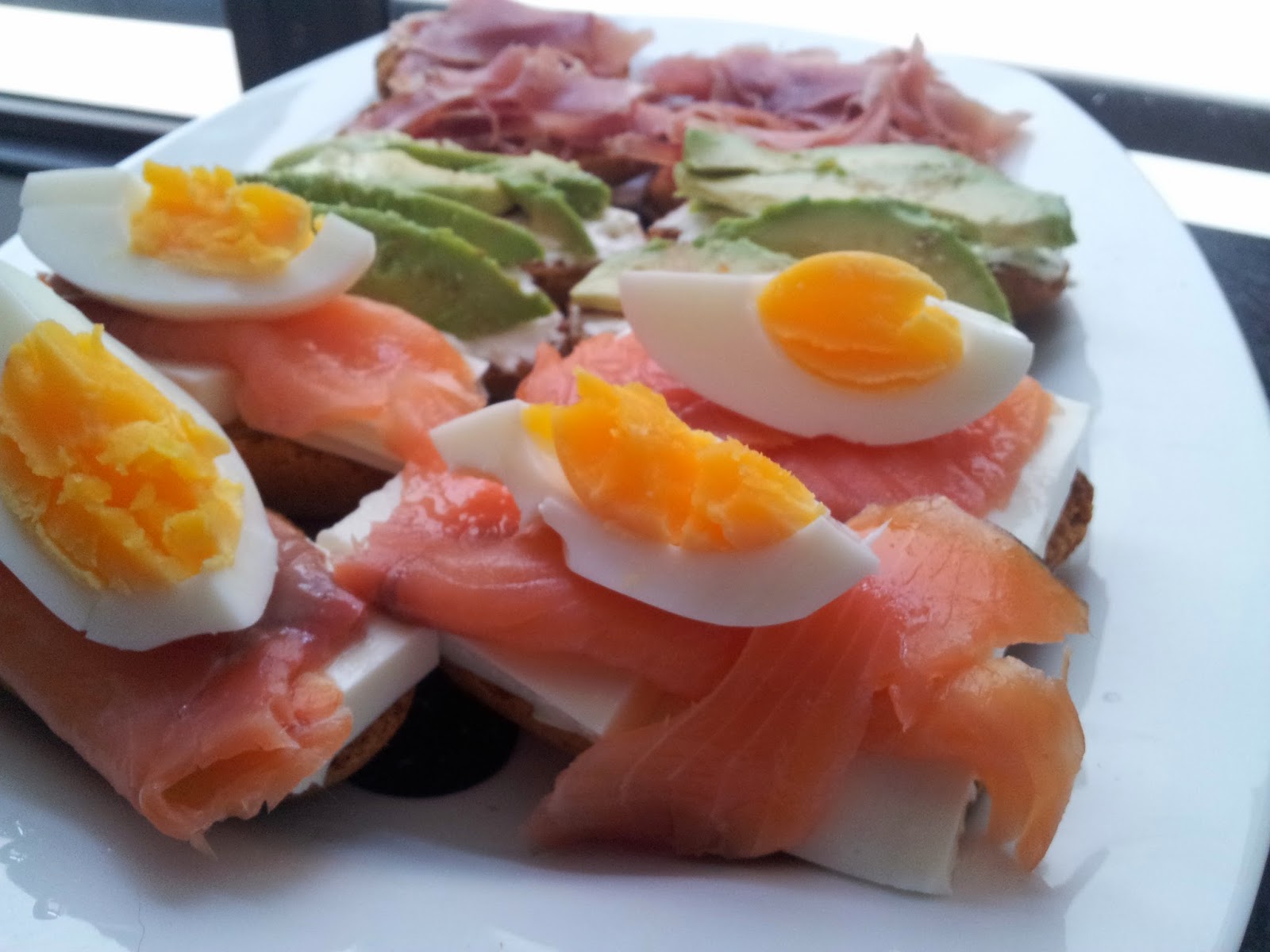 - Para finalizar, el último se compone de queso fresco, con salmón y huevo cocido 12 minutos en agua.