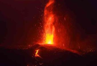 La erupción volcánica de La Palma ha vuelto a producir pasadas las 7 de la noche en Canarias, explosiones estrombolianas de baja intensidad, según informa el Instituto Volcanológico de Canarias, Involcal.