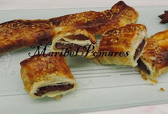Cortamos la lamina de hojaldre en trozos de 12 cm de ancho.