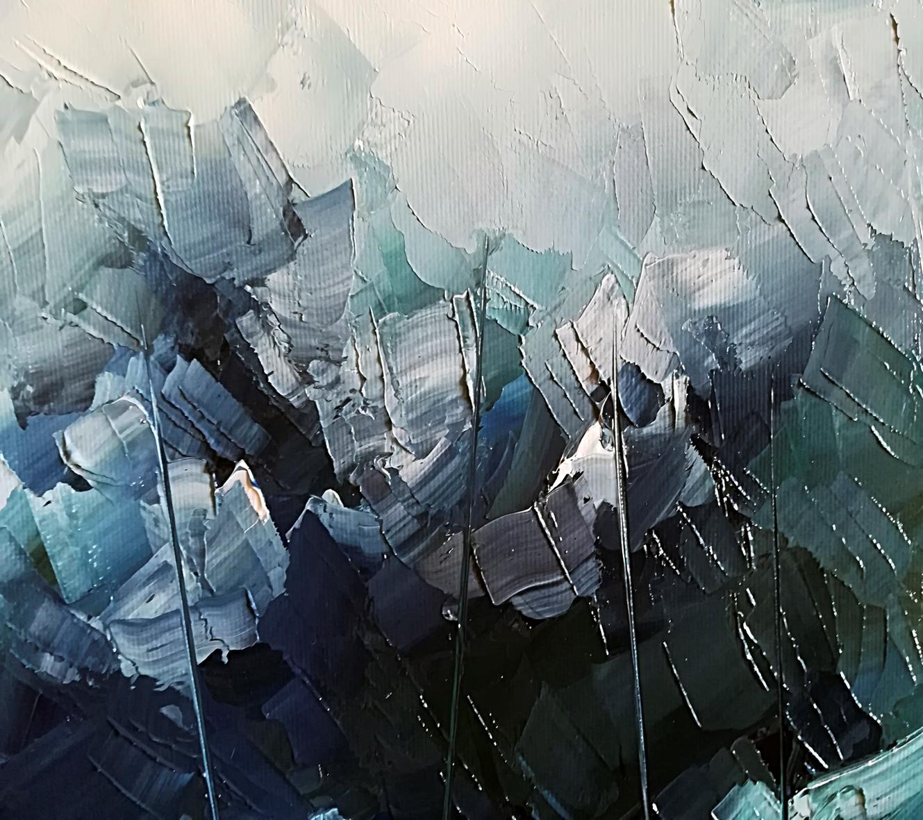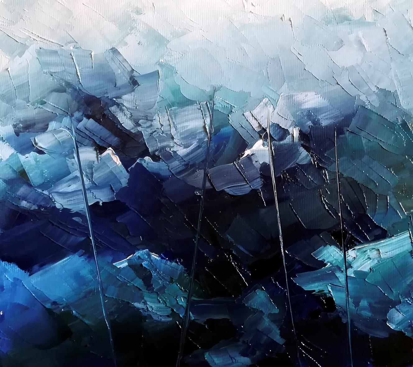 " Cañas de pescar entre rocas "."Fishing rods between rocks".óleo espátula lienzo. 2018.detalles.