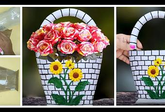 Canasta de flores reciclando botellas de plástico