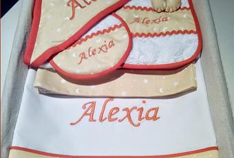 LLeva una capa de baño, un babero grande y otro pequeño, juego de cuna y osito tilda, bueno, el osito no entraba en el encargo pero se me antojó hacerlo a mí