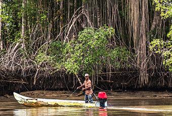 De nuevo, recorriendo los manglares de Cayapas Mataje, una de mis zonas favoritas del país, acabamos haciendo una parada en un pequeño pueblo costero que ni sale en los mapas. Canchimalero resultó ser el lugar donde se celebra cada 3 de Noviembre la fiesta de San Martín de Porres, el santo negro. Una procesión marítima que cada año congrega a miles de fieles de la zona. Allí nos estuvieron contando las historias del pueblo y nos invitaron a asistir a la fiesta el día 3 de Noviembre. Ojalá podamos vivirlo algún año....