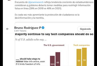 Según ese estudio, alrededor del 39 por ciento de los norteamericanos indagados en el año 2018 opinaban que la administración debía tomar medidas para detener esas distorsiones, mientras que en el 2021 los que sostienen ese criterio ya alcanzan el 48 por ciento.