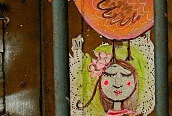 La foto es de unas mejillas tiernas un poco enjauladas, un poco soporte de gallinas. Las dos imágenes estaban bien pegaditas sobre una de esas puertas de madera recia, viejas y sucias de un rincón perdido en la urbe barcelonesa. La suerte quiso que un artista urbano decidiera darle nueva vida. A veces en las puertas viejas puede resurgir la vida en un destello. Y así pasó aquí. La puerta revivió.
