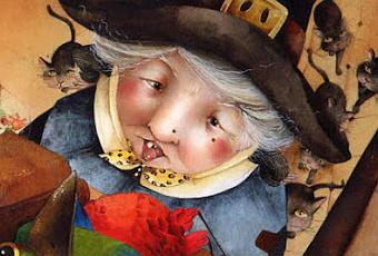 Ilustración Xavière Devos.-William Shakespeare-Esfuerzo doble, doble y problemas;Fuego ardiente y caldero burbujeante.Solomillo de serpiente de pantano,En el caldero hervir y al horno;Ojo de tritón y dedo de rana,Lana de murciélago y lengua de perro,Tenedor de Adder y aguijón de serpiente de cristal,Pierna de lagarto y el ala de lechuza,Para un encanto de problemas potentes,Que hierva como el caldo del infierno y que burbujee.