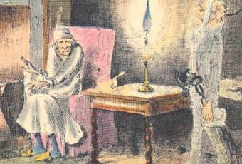No recuerdo bien la editorial cuando lo leí por primera vez, tal vez Bruguera, allá por los años 60, pero era un libro de esos ilustrados, mitad novela, mitad "tebeo", con profusión de dibujos en blanco y negro, y esos interiores lóbregos y la luz trémula de las velas proyectando en las paredes sombras misteriosas, lo que daba al relato un aire frío e inquietante, muy acorde con la noche de pesadilla que iba a vivir su principal protagonista, un viejo avaro, Ebenezer Scrooge. Un personaje inolvidable, antipático, mezquino y tacaño hasta consigo mismo. Lo recuerdo muy bien.