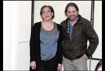 Ada Colau, alcaldesa electa de Barcelona, y el líder de Podemos, Pablo Iglesias, en foto de archivo.