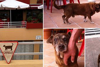 A Canelo, que a saber si alguna vez tuvo un nombre que no hiciera referencia al color de su pelo, lo respetan hasta los más pequeños. De hecho, todas las mañanas sube hasta la parada de guaguas y acompaña a los niños hasta que llega el micro que los lleva al colegio. Luego regresa a las terrazas donde pasa tumbado gran parte del día.