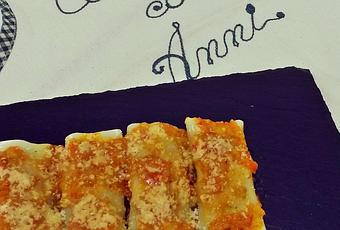 - Servir los canelones con las salsa y espolvorear queso parmesado rallado por encima.