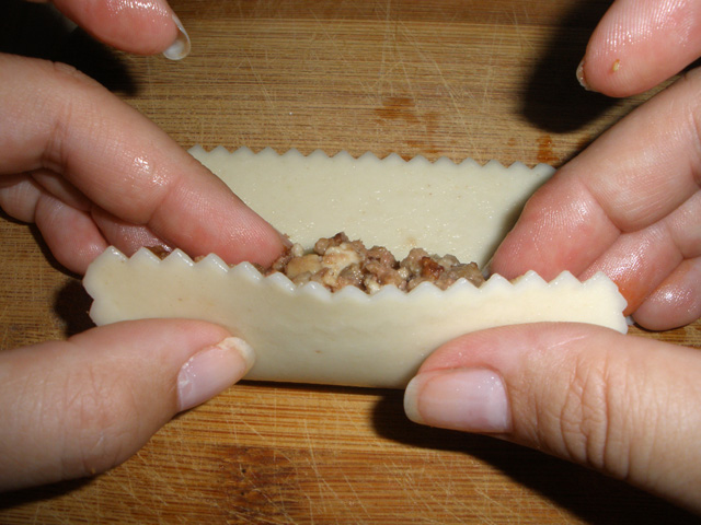 Os aconsejo que pongáis el paté cuando la carne esté fría, ya que si la echamos en caliente, el paté se fundirá, y queremos que ésto lo haga en el horno cuando lo gratinemos, no antes.Haciendolo así, la carne queda compacta y nos va a ayudar a montar los canelones.