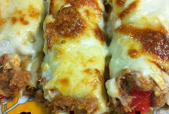 El plato de hoy es una nutritiva delicia que gustará a todos. Si tenéis niños podéis suprimir los pimientos (no les suelen gustar, por lo menos a los míos cuando eran pequeños) y dejar el relleno simplemente con el atún, el tomate y el huevo duro.