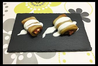 Hoy os traemos este delicioso entrante que puedes servir como aperitivo o como primer plato, ¿con qué lo rellenarías tú?Ingredientes para 2 personas:- 1/2 berenjena- 4 huevos de codorniz- 4 cucharadas de salsa aspencat de La Pericana del Muro- 3 cucharadas de crema de queso con queso manchego de Quesos Record- AceiteReceta:- Lava y pela la berenjena.- Córtala de forma vertical en tiras no muy gruesas (1/2 cm aprox).- Espolvorea un poco de sal por encima y déjalas en un colador durante 10 minutos para que se quite el amargor que tienen.- En una sartén con aceite de oliva, rehoga las tiras de berenjena hasta que se doren.- Cuece los huevos de codorniz en agua hiriviendo durante 2 minutos.- Enfríalos y pela los huevos.- Córtalos por la mitad y mézclalos con la salsa aspencat (hecha a base de bacalao, cebolla, ajos, pimiento morrón, pepinillo y aceite de oliva).- Coloca una cucharada del relleno en un extremo de cada tira y enróllalas para formar los canelones.- Calienta la crema de queso con queso manchego para que su textura sea como la de una salsa ligera.- Vierte la salsa por encima de los canelones.Bon appétit!