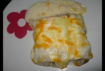 La vamos poniendo en la bandeja del horno , cuando tengamos todos los rollitos , echamos la bechamel y el queso rallado
