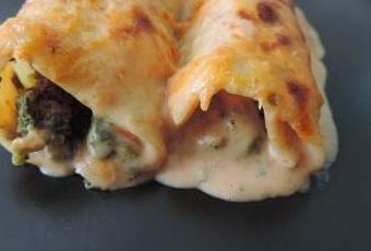- Preparamos los canelones extendidos en un paño seco y lo rellenamos con la mezcla de carne.