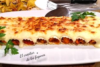 *Si al terminar de guisar el relleno está demasiado fluido espésalo con una cuharadita de maicena disuelta en agua fría, de lo contrario será difícil enrollar los canelones sin que se salga.