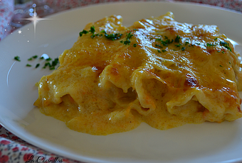 Ya tenemos aquí la navidad como pasa el tiempo y es que el condenado corre, corre y no hay quien lo pare ¿verdad?, tal vez eso es lo que hace pensar en disfrutar mas de las pequeñas cosas del dia a dia y no pasarnos tanto tiempo arrepintiéndonos de lo que hicimos o no en el pasado, preocupándonos por el futuro cuando ninguno sabemos lo que va a pasar, por que el pasado, pasado es y por mucho que pienses en el ya no vas a poder cambiar nada, solamente aprender de los errores cometidos para no volverlos a cometer mas, y el futuro nadie lo conoce así que para que preocuparse de como vamos a estar el año que viene si no lo sabemos, cuando llegue ese momento " el presente " ya nos preocuparemos, porque es este, el PRESENTE el único momento que controlamos, el único instante que existe, así que mi mensaje para todos estas navidades es que: " Vivas el presente y seas feliz en este instante, haz todo lo que te guste hoy, dale un beso a esa persona que tanto quieres hoy, abraza hoy a tu hermano, tu madre.., queda con ese amigo, realiza ese viaje..¡¡VIVE EL PRESENTE !!.Bueno y ahora si no me enrollo mas y voy con la receta, estos canelones de marisco están para chuparse los dedos, en casa nos encanto, es una receta muy buena para el menú de navidad ya que puedes dejarlos preparados la noche antes y luego solo tendrás que meterlos al horno a gratinar en el ultimo momento, dejándote así tiempo para preparar otras cosas del menú y además encantara a todos porque están buenísimos. Estos llevan además del marisco, rape ( este pescado suele ser bastante caro y cunde muy poco así que podéis sustituirlo por salmón y quedara igual de rico). Hay os dejo la receta y espero que os guste. ¡Felices fiestas!. INGREDIENTES (para 4 personas):Para el relleno: - 250g de langostinos.- 250g de rape en trozos.- aceite de oliva.- 30g de maicena.- 1/2 cebolla.- 1/2 zanahoria.- 200ml de nata liquida para cocinar. Para la bechamel:- 200g de cebolla.-150g de mantequilla.-1 zanahoria.- 100 g de rape.- 1/2 litro de leche.- 50g de harina.- 1 paquete de canelones ( 16 unidades ).- sal.- pimienta negra.- nuez moscada.- queso rallado para gratinar. ELABORACION:Primero haremos un fume de pescado, poniendo a hervir un litro de agua con las cabezas y las cascaras de los langostinos, la cabeza y las espinas del rape, una hoja de laurel y un diente de ajo. Lo dejaremos hervir unos 30 minutos he iremos quitándole al caldo las impurezas que vaya soltando, cunando este listo lo colamos y reservamos.