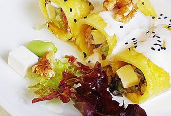 Esta es otra versión fácil, sencilla, rápida y no menos sabrosa de los Canelones de piña con frutos rojos (aquí). Si aquella era un postre lleno de frutas, esta es un entrante delicioso realizado con verduras frescas, queso y nueces.