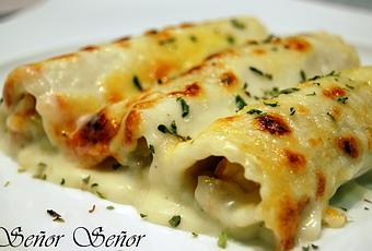 El otro día en un restaurante probé unos canelones rellenos de gambas y rape con salsa de carabineros, la verdad que estaban deliciosos, por eso quería intentar hacerlos para compartir la receta con todos vosotros porque me encantaron y son unos canelones diferentes a la receta de siempre rellenos de carne picada. La salsa de carabineros me la salté porque son muy caros, simplemente puse la besamel que hago siempre para los canelones. El rape no lo compréis fresco porque también es muy caro, yo compre en la sirena unas colas de rape que vienen congeladas, la bolsa de 9 colas de rape costaba 5 € y con 3 colas hice esta receta. Los gambones como siempre los compro en mercadona que son muy buenos y muy baratos. Espero que os guste esta receta de canelones de rape y gambones. Aquí os dejo otras receta que hice de canelones de espinacas y queso philadelphia. Ingredientes para 20 canelones
