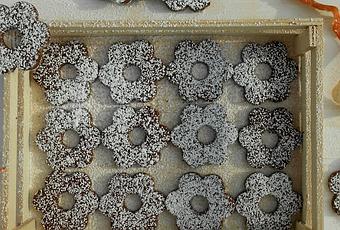 La receta del libro es la de la zona de Piemonte donde se elaboran con almendras ( o sea que hay un error), pero Maggie nos informó que en Ligure se preparan con yema de huevo y nos dijo: "quién quiera hacer la versión del libro adelante y quién quiera hacer la versión de Ligure, adelante también, lo que sí va a misa es la forma que tienen..." Y yo respeté la forma de flor, aunque me tomé la licencia de hacerlas de chocolate y naranja... es que Maggie nos lo permite todoooooooo, ja, ja, ja.