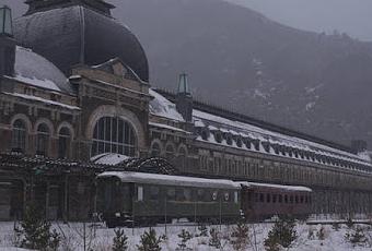 La gran estación de Canfranc, mandada construir por el Rey Alfonso XIII en 1928, divide la población de apenas 500 habitantes en dos. Media estación, a partir del hall principal, sería territorio francés y la otra mitad el español. En 1970 pasó el último tren con destino a Francia.Se están revisando diversos proyectos para que la estación vuelva a tener su antiguo esplendor y que quizá vuelva a ser utilizada para el transito internacional de trenes. Lo que ahora es un caparazón lleno de escombros se convertirá en hoteles, restaurantes, casas e incluso en un museo ferroviario. Mientras es visitada por más de 40.000 personas al año.