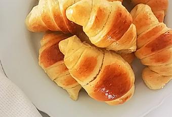 Te dejo a continuación los ingredientes y el paso a paso: INGREDIENTESEsponja (pre-fermento):25 g de levadura fresca desmenuzada o 10 g de levadura seca100 ml. de agua templada15 gr. Harina (1 cucharada sopera)15 gr. Azucar (1 cucharada sopera)Masa principal: 535 g de harina normal125 g de azúcar130 g de mantequilla ( a temperatura ambiente)1 huevo100 ml de leche templada 1 cucharada de esencia de vainilla5 g de sal (1 cucharadita postre rasa)Para decorar: 1 huevoAzúcar glassELABORACIÓNPon todos los ingredientes de la esponja en un bol y mezcla bien. Cubre con film y deja reposar 20 minutos.Después pon en un bol todos los ingredientes de la masa principal + la esponja y amasa a mano, Thermomix o amasadora durante 10 minutos. Si la masa resulta pegajosa, se puede añadir un poco más de harina.Cubre el bol con film transparente o un paño limpio y deja reposar hasta que doble el volumen (1 hora aproximadamente)Vuelca la masa en la mesa y desgasifica (aplasta la bola de masa con las manos para que salga el gas del fermento). Divide en tres porciones y estira una de ellas con un rodillo en forma de rectángulo.Corta la masa con un cuchillo afilado formando triángulos isósceles y enrolla comenzando por la base del triángulo hasta el vértice para formar el bollito y colócalo sobre una bandeja de horno forrada con papel de horno. Repite el proceso con todas las porciones de masa.Deja reposar los bollitos de nuevo 30-45 minutos para que crezcan y después píntalos con huevo batido.Introduce en el horno precalentado a 180⁰, calor arriba y abajo, durante 15 minutos.Espolvorea con azúcar glass y listas!!