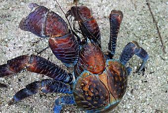 El cangrejo de los cocoteros todavía no ha dejado de asombrar a los sabios. Es un animal de gran tamaño, que recibió su nombre debido a su extraña facultad de escalar los troncos de los cocoteros con una facilidad desconcertante. Se sabe que se reproduce en el mar y que sus larvas pasan su existencia en el agua hasta que la metamorfosis les convierte en adultos capaces de afrontar los mil peligros de una vida en tierra firme.