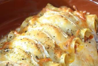 Sacamos las placas de los canelones del agua y vamos rellenando y enrollando, una por una.