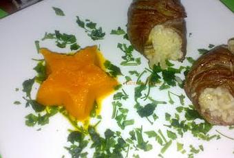 Presentamos sobre unas virutas de perejil fresco y acompañamos con una estrellita de compota de zanahoria que haremos con ayuda de un molde.