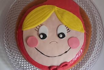 Y así nos quedó el bizcocho... disfrazado de Caperucita Roja.