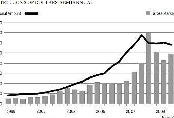 El cuadro está tomado de ‘THE FINANCIAL CRISIS INQUIRY REPORT’, al que hice referencia en ‘Arian seis’ 31de enero de 2011. Es otra vista del gran crecimiento de los derivados que supone una frontera de cambio por el salto cualitativo en el sistema financiero en este comienzo de siglo y una de las causas de la crisis. Todo lo cual está generando un cambio en los equilibrios que existían entre el poder económico y político a escala mundial y a escala nacional.