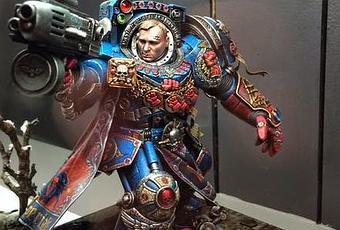 El Crystal Brush es el evento de pintura de miniaturas del Adepticon y ha crecido en importancia en solo dos años,en parte por los jugosos premios que se dan(En metálico,sobre todo:13000 dolares US a repartir entre los ganadores de las categorías) y en parte porque permite votaciones on-line fuera de las decisiones del jurado a modo de valoraciones complementarias.Claro que eso,por ejemplo,trajo algunas quejas y protestas por considerar que eso adulteraba las decisiones y los resultados,ya que podía pesar mas el numero de amigos y de cuentas que tuviera la gente mas que el talento real de los artistas.Aunque en ciertos casos creo que no hay duda algo,como en esta figura de un capitán exterminador de los Puños Carmesíes,de escala grande,que se ha presentado al evento.El trabajo de modelado y de pintado es sencillamente brutal.
